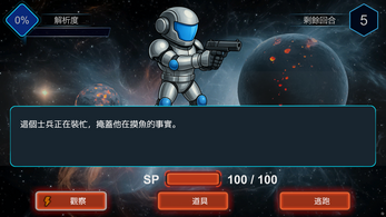 遊戲中的主角若曦沒有傳統的血量,戰鬥的關鍵在於解析敵人弱點。當解析度達到 100% 時,若曦將能發動致命一擊。而若回合時間耗盡,若曦將只能逃離戰鬥,此時該區域的警戒值將會提升。